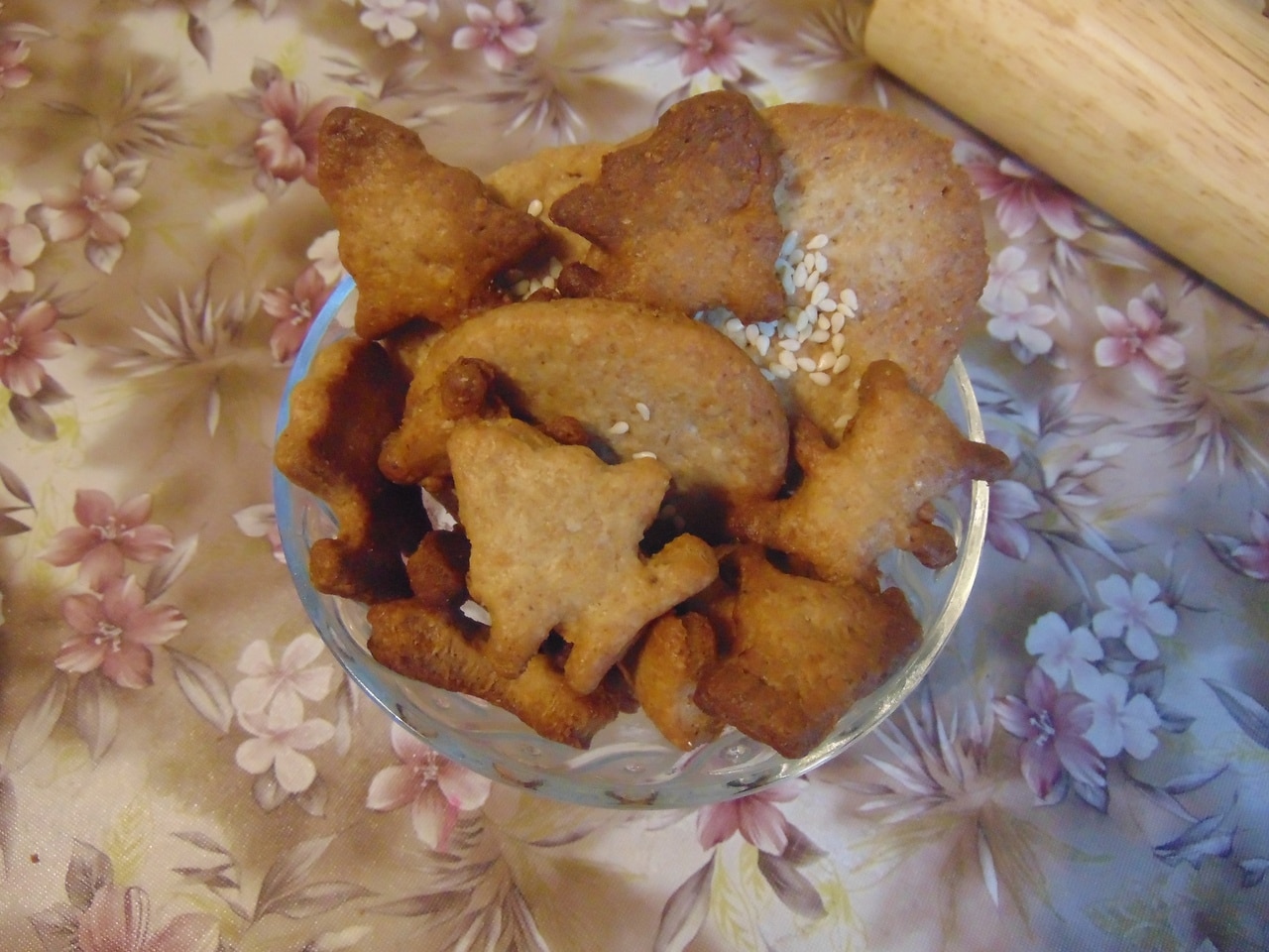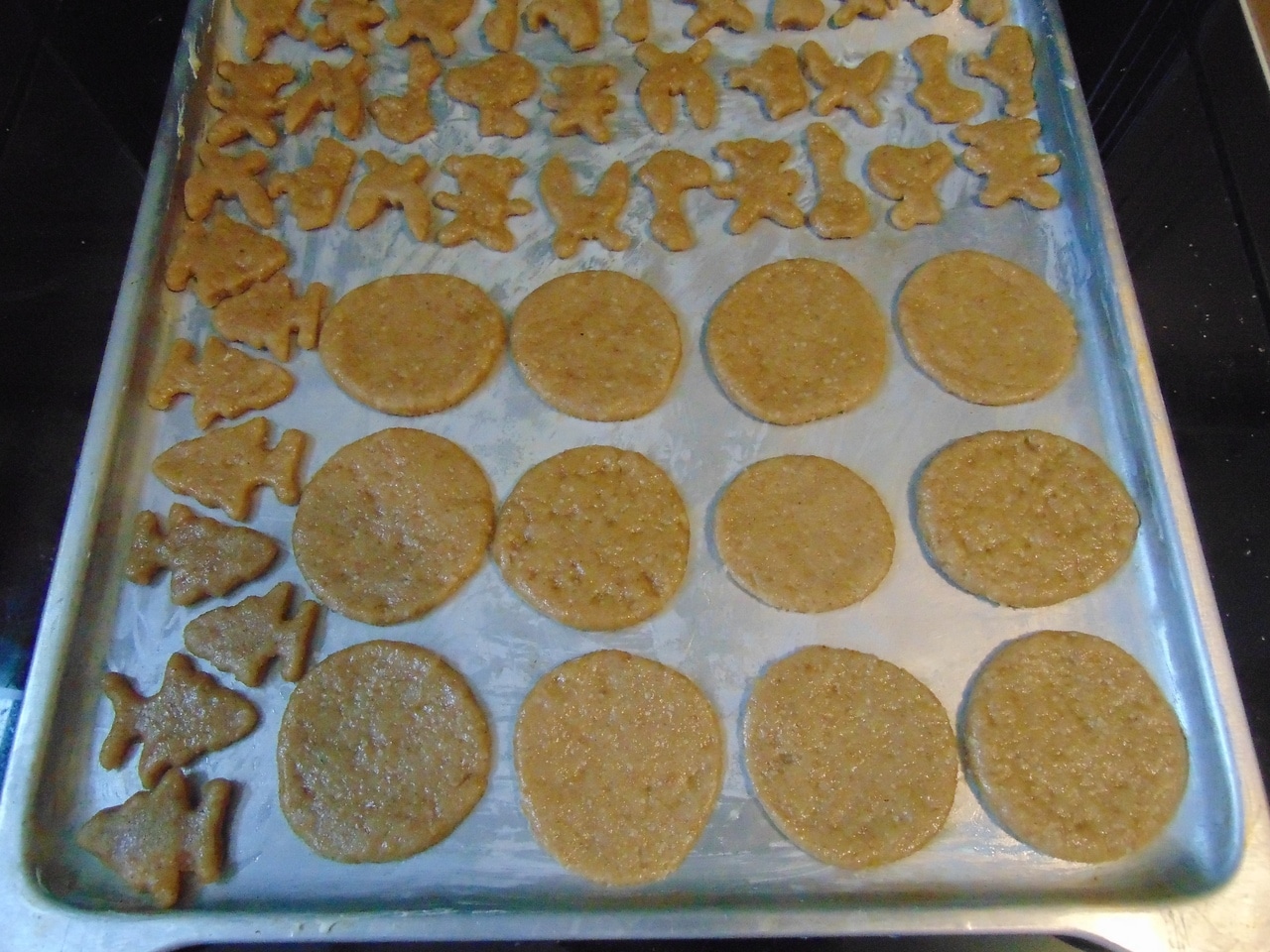 Вырезать печеньки нужной формы. Легче всего это делать стаканом. Сложить всё на противень, смазанный маслом. Или же предварительно застелить его пергаментной бумагой. Можно украсить. Я добавила немного кунжута. Отправляем в духовку на 10-13 минут при температуре 200-220 градусов. Всё зависит от размера печения.