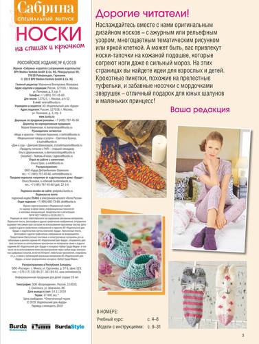Популярный журнал по вязанию предлагает читателям научиться вязать носки. Вы познакомитесь с азами этого увлекательного занятия. А чтобы закрепить полученные знания, журнал предлагает вам связать несложные в исполнении, но очень эффектные модели.