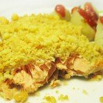 Форель, запеченная в духовке под томатным соусом с миндалем