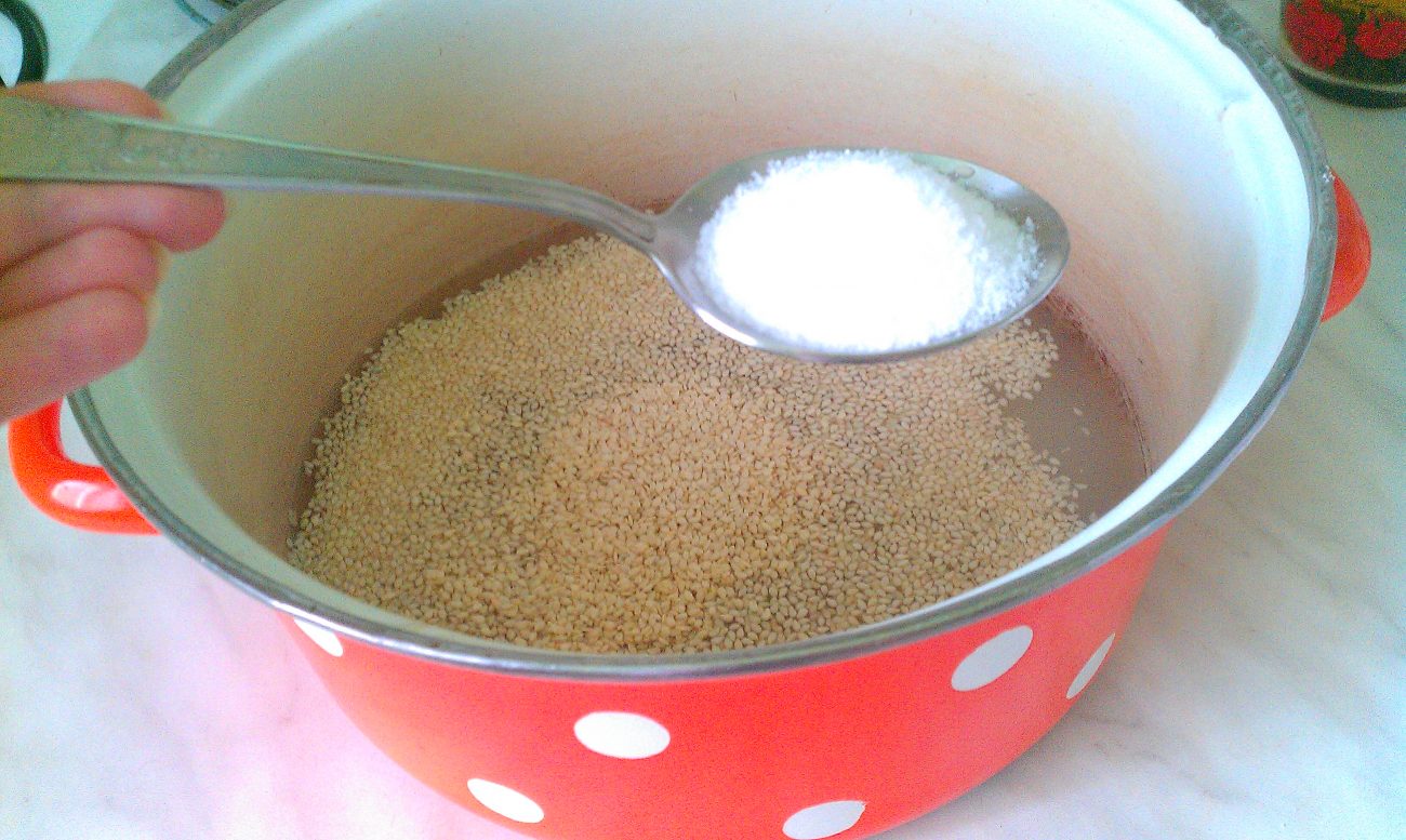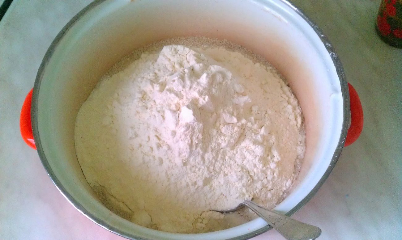 Пол чайной ложки сухих дрожжей развести в теплой воде. Через пару минут вылить в основную массу воды (2 стакана).