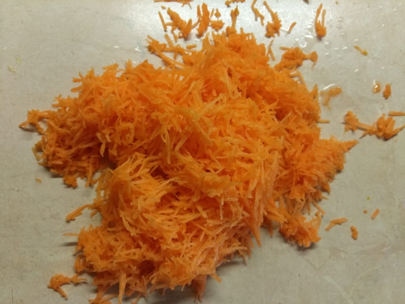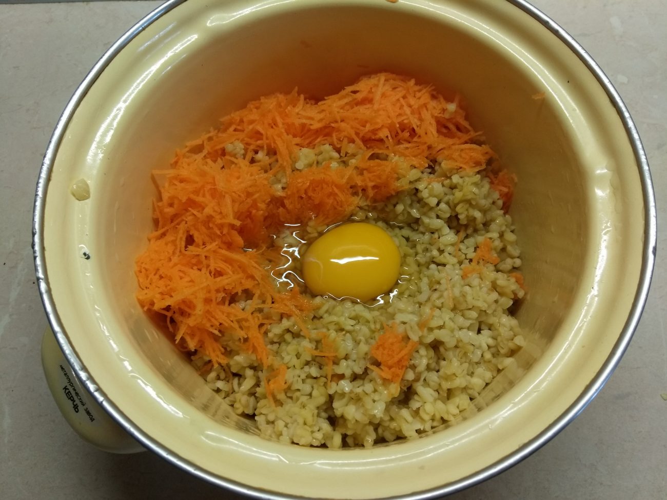 3. Морковь помыть, натереть на мелкой терке. Также добавить к булгуру вместе с яйцами. Посолить.