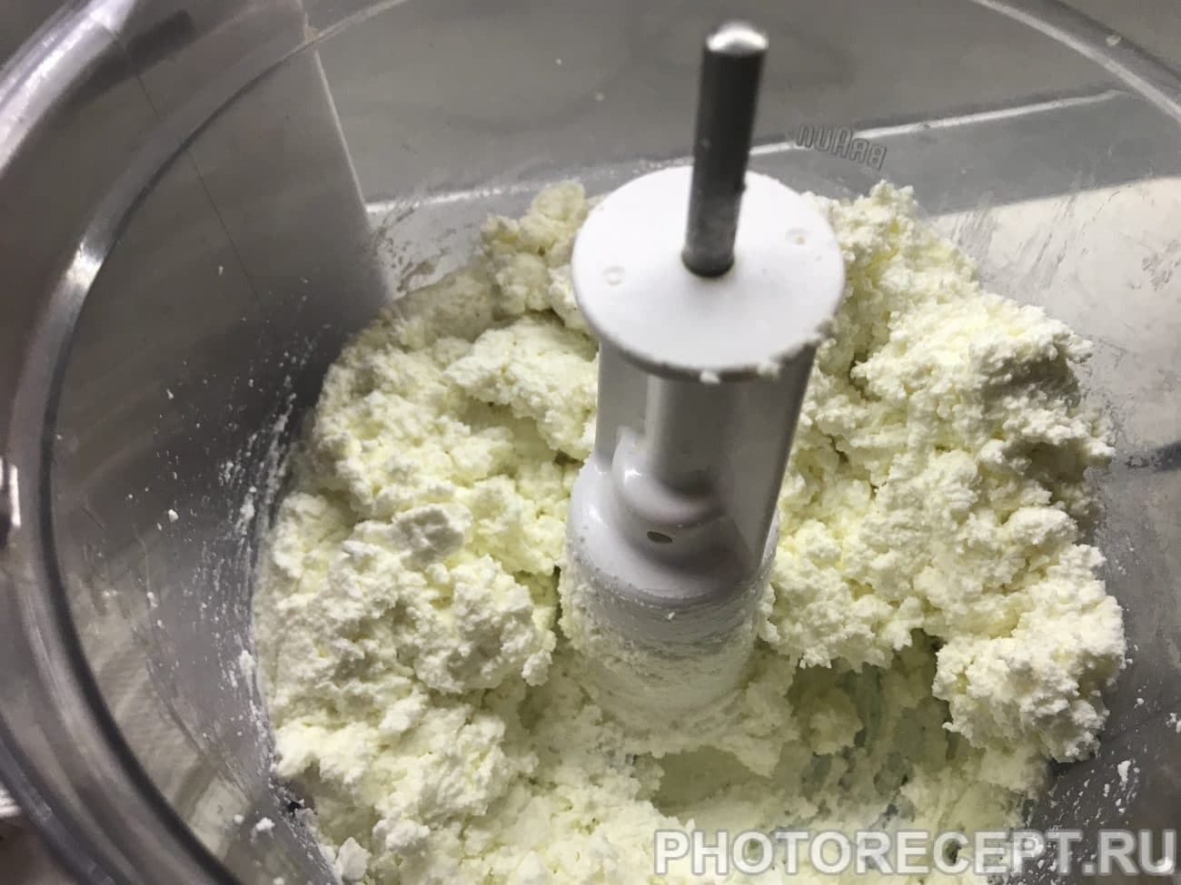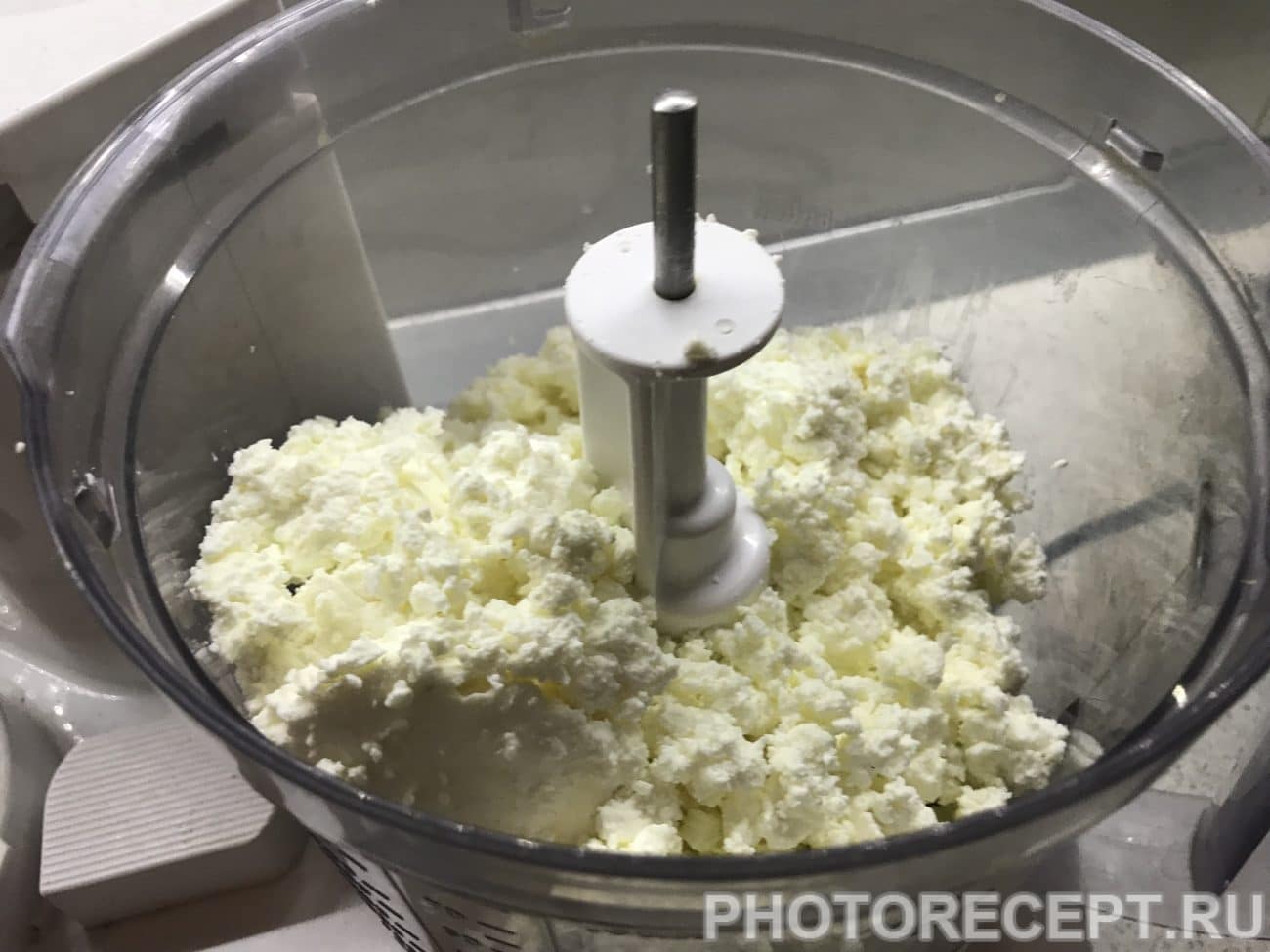 Включаем духовку на 190 градусов. Пока она нагревается, сделаем творожную массу для запекания. Ложим творог в чашу блендера и разбиваем зерна.