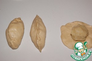 В центр поместить начинку и залепить края, прижать их к пирожку.