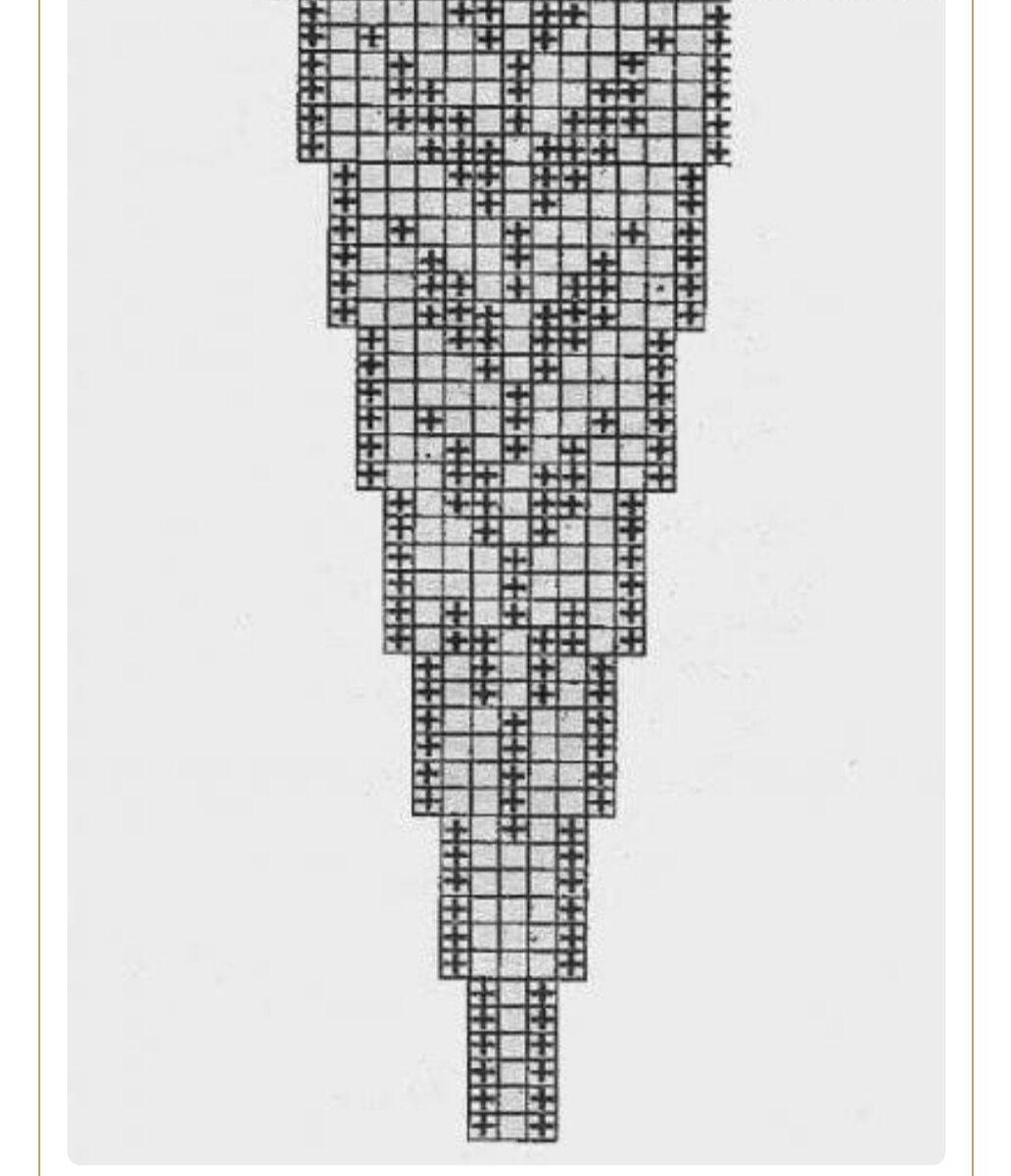 Но, в зависимости от размера и ширины, советую брать 8-10 рапортов клина, а между ними произвольно варьировать узор (либо столбики с накидом и воздушные петли между ними, либо просто столбики с накидом).