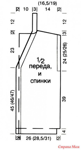 На высоте 68 (69/70) см выполнить плечевой скос, как на спинке .